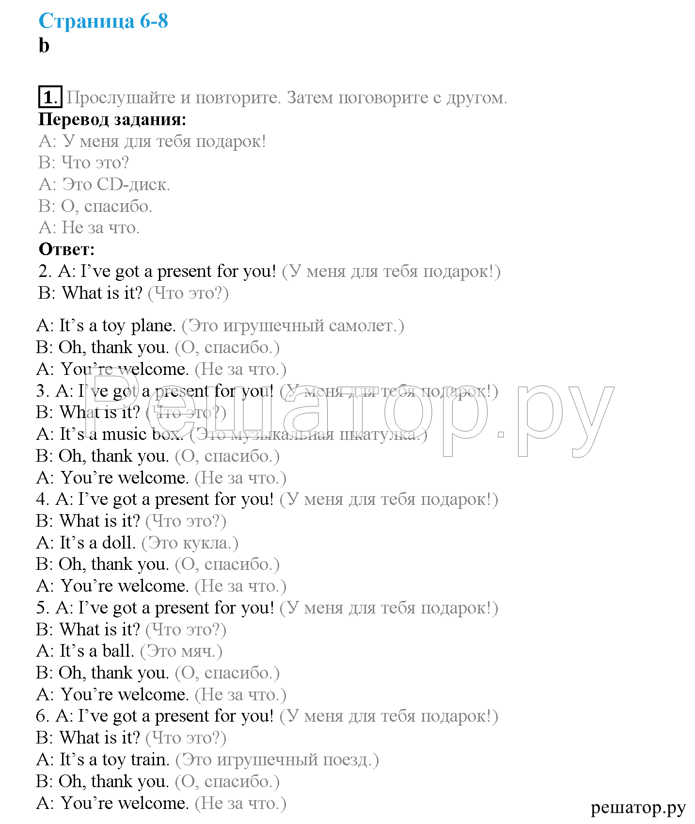 Такие разноплановые задания требуют внимательного отношения. Пугаться нагрузки не стоит, ведь онлайн-справочники помогут оперативно справиться с любым сложным этапом. С решебниками можно не обращаться к репетитору, успешно выполнить все переводы. Наши помощники доступны 24/7, они соответствуют стандартам и требованиям. Их можно смотреть с любого гаджета. Постепенно можно отметить прогресс: улучшится успеваемость, появится понимание грамматики, увеличится вокабуляр. Будет заметна разница, учитель точно отметит успех и поставит высокую оценку. Поэтому отчаиваться не стоит, любые сложности преодолимы. Для современных детей существуют все шансы выучить английский. Онлайн-решебники разработаны для всех и для приятной, полезной учебы. Сборник всегда поможет, достаточно выйти в Интернет.