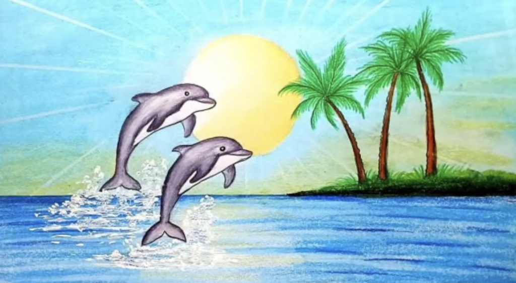 Чёрное море мы себе представляем с песчаными (или с галькой, т.е. мелкими камешками) пляжами, пальмами (в России на юге в субтропиках тоже растут пальмы). Можно добавить белую яхту на воде и дельфинов (черноморских афалин).