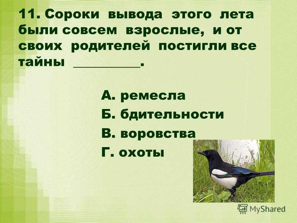 - Украденный сороками трофей.