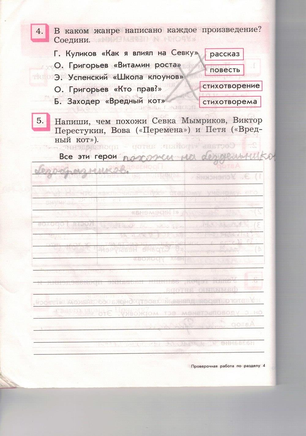 Проверочная работа №2 к разделу «У истоков русской детской литературы» (Путешествие 1) Бунеев Тетрадь по литературному чтению 4 класс. Ответы