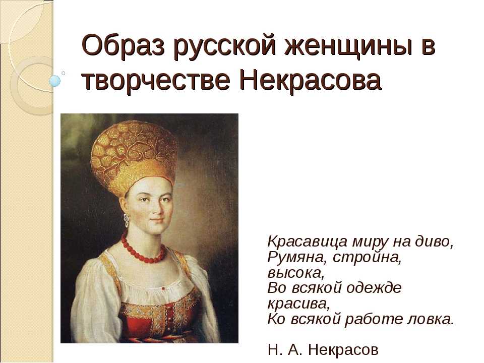 В романе Некрасова представлены различные типы женщин: от бедных крестьянок до знатных дам. Каждая из них имеет свою историю и свои проблемы. Некоторые из них борются за свои права и свободу, другие же принимают свою судьбу и живут в соответствии с общественными нормами.