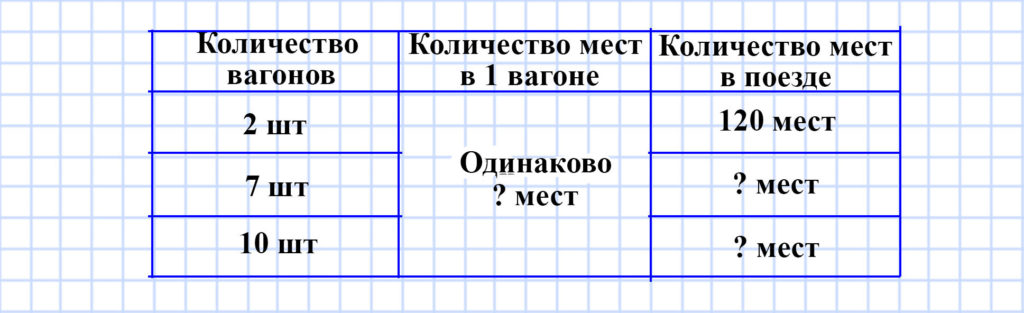 14. В 2 одинаковых спальных вагонах поезда 120 мест. Сколько мест в 7 таких вагонах? в 10 таких вагонах?