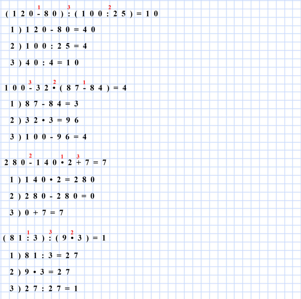 11. Рассмотри выражения и объясни, почему действия следует выполнять в порядке, указанном синими цифрами.