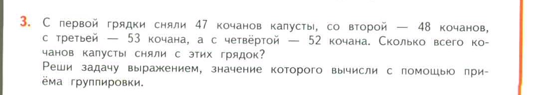 С первой грядки сняли 47 кочанов капусты, со второй − 48 кочанов, с третьей − 53 кочана, а с четвертой − 52 кочана. Сколько всего кочанов капусты сняли с этих грядок?