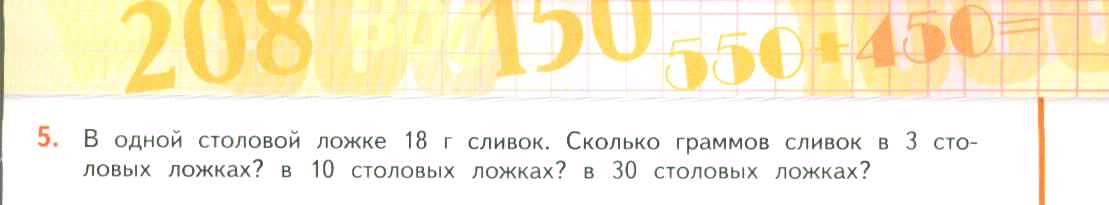 В одной столовой ложке 18 г сливок. Сколько граммов сливок в 3 столовых ложках? в 10 столовых ложках? в 30 столовых ложках?