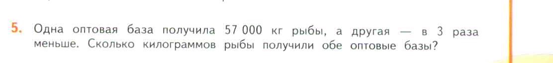 Одна оптовая база получила 57000 кг рыбы, а другая − в 3 раза меньше. Сколько килограммов рыбы получили обе оптовые базы?