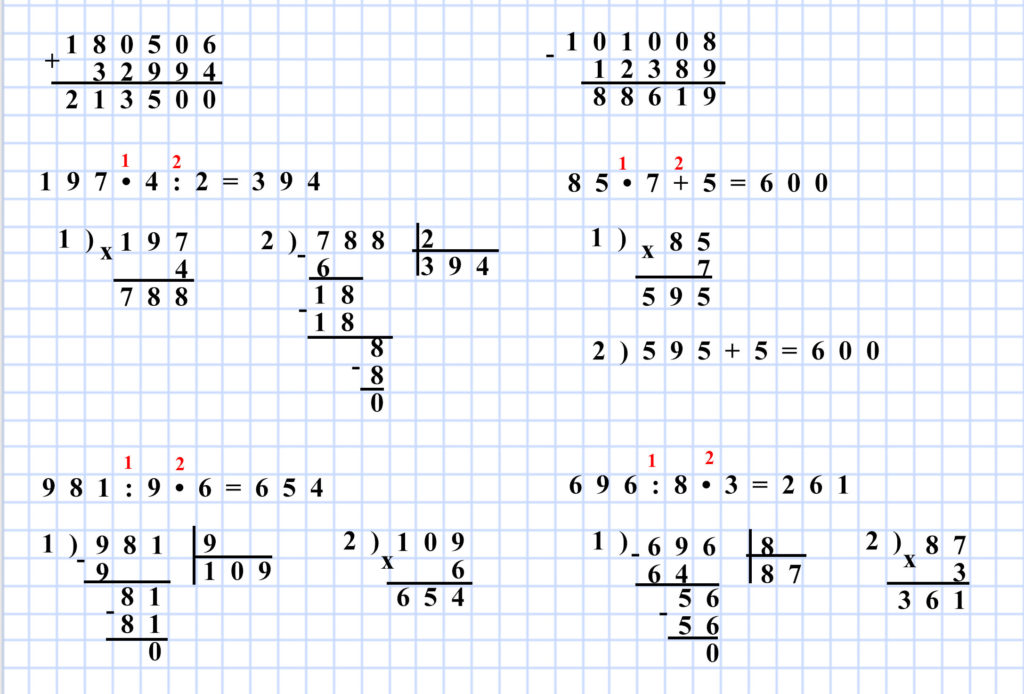 - деление и умножение;