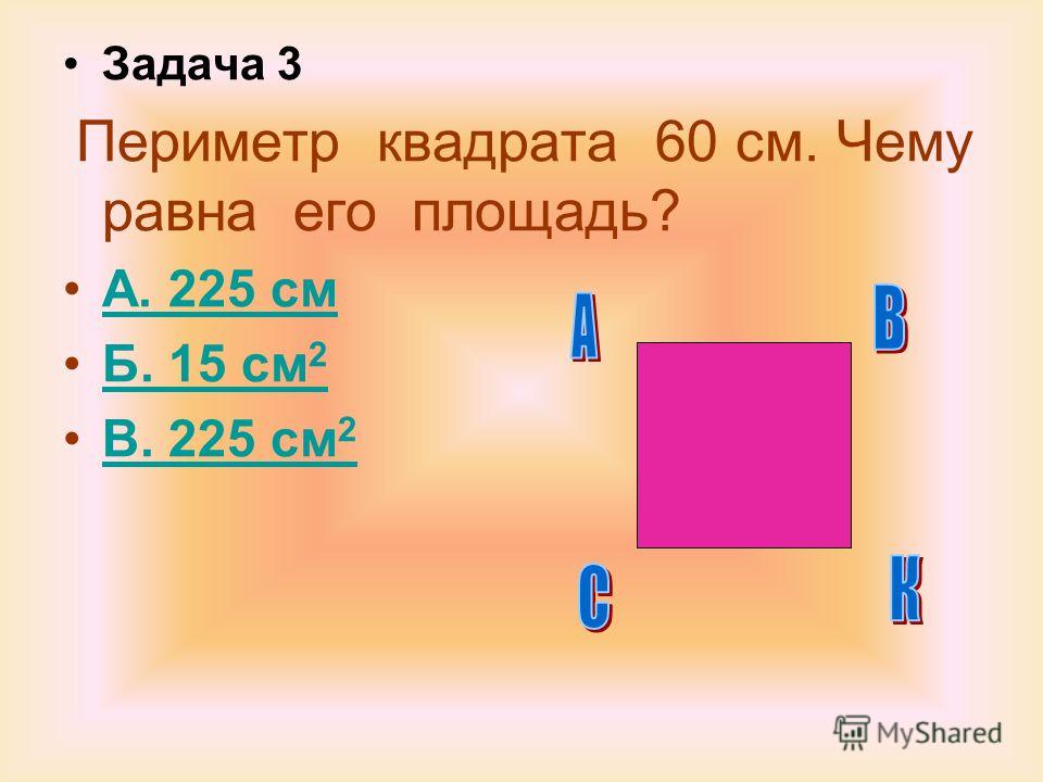 Задача 3. Найдите площадь квадрата, если его периметр равен 20.